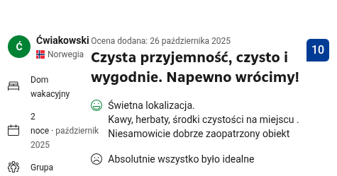 Naszym priorytetem jest komfort gości i sąsiadów, nie zgadzamy się na hałasowanie i organizowanie mocno zakrapianych imprez, w tym wieczorów kawalerskich i panieńskich. Dbamy o to, by każdy Gość miał u nas szansę na relaks.